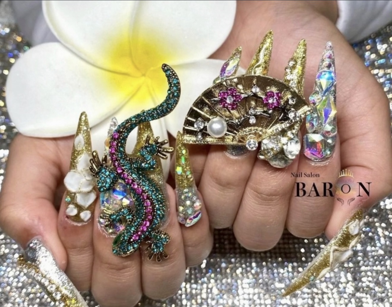 イベントネイルの定番といえば、やはりストーンを使った華やかなデザインです。
